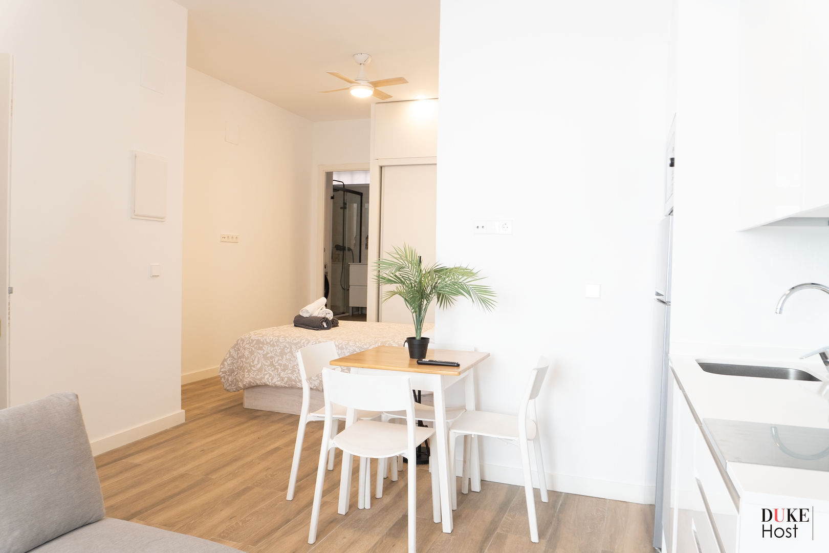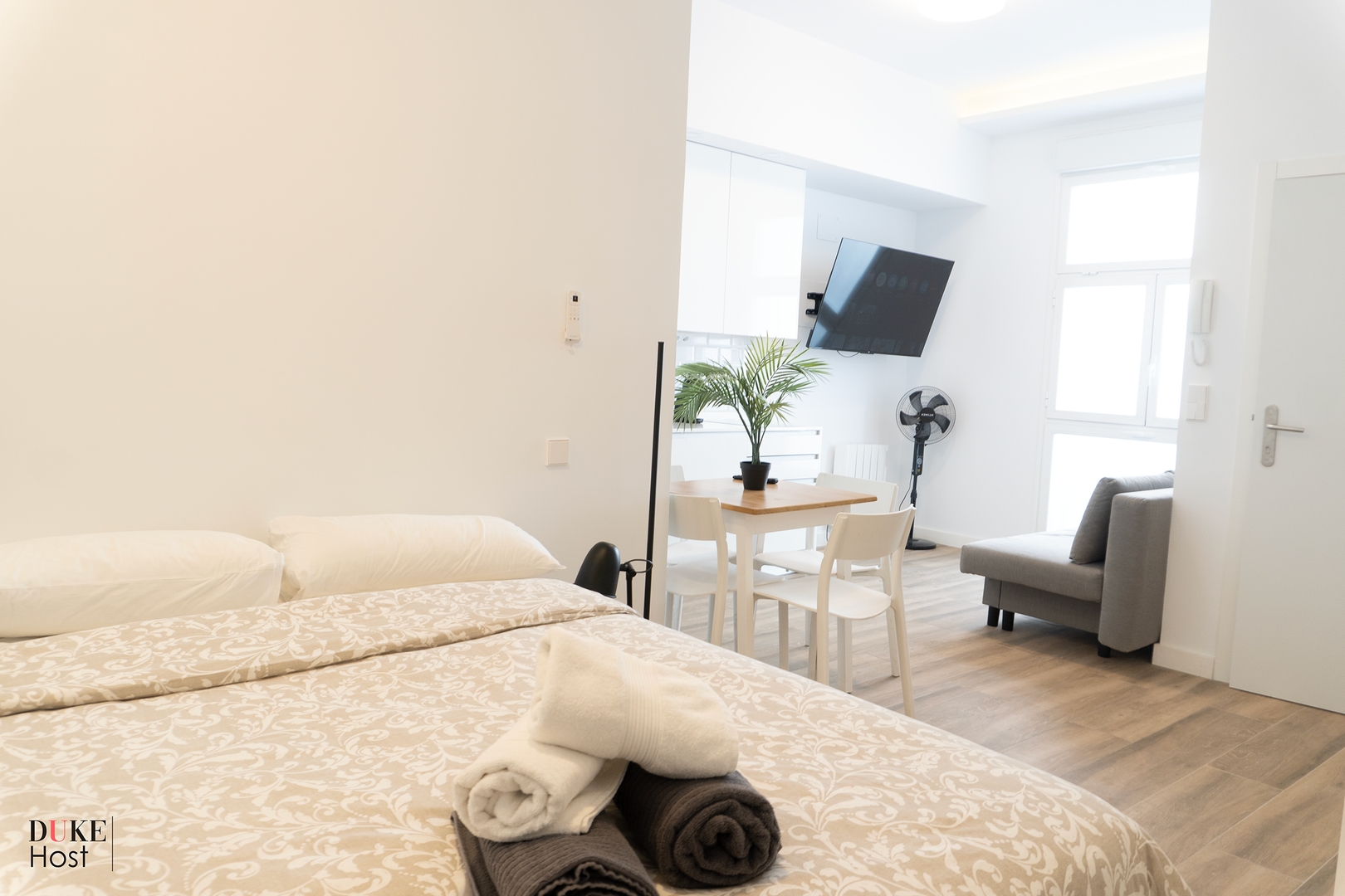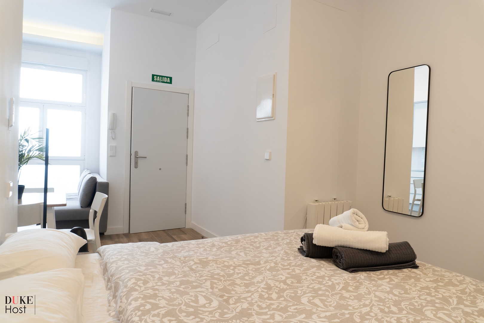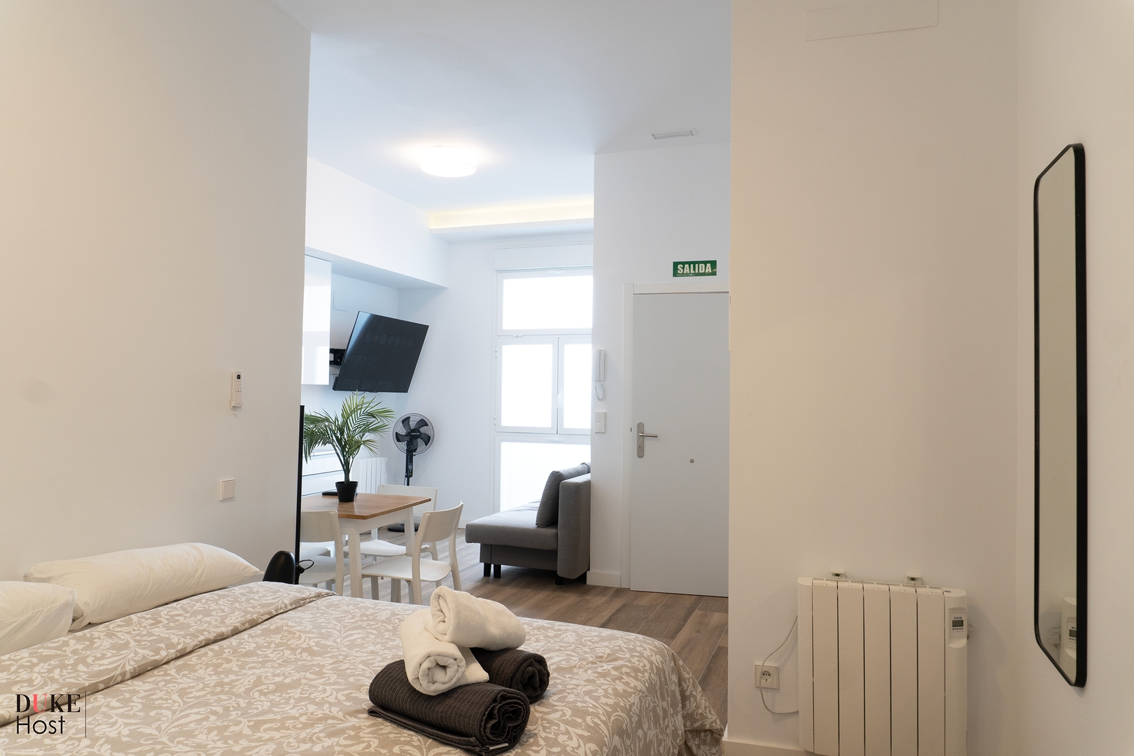Unidad privada en una casa de huéspedes, Madrid Esta unidad privada de 25 m² puede alojar hasta 4 personas. Cuenta con un espacio que incluye zona de dormitorio, sala de estar y baño privado. Entre los servicios se incluyen Wi-Fi, TV, lavadora, secadora, plancha y secador de pelo. La unidad también dispone de microondas, cafetera, hervidor de agua, vajilla y cubertería. Una opción sencilla y práctica para viajeros que buscan un espacio privado con lo esencial durante su estancia en Madrid.