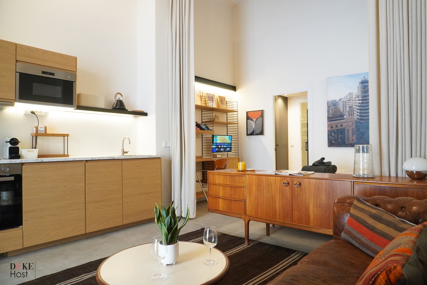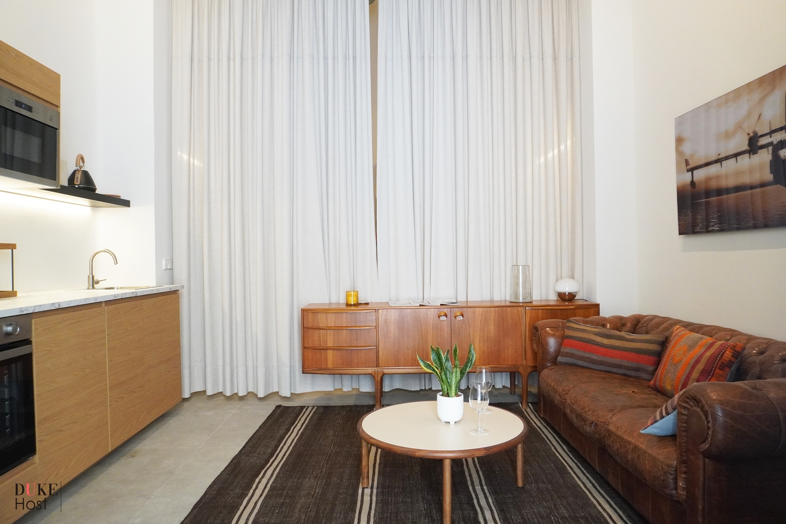 This bright and fully equipped studio apartment (34 sqm) is ideal for up to 2 guests. It offers a private entrance, walk-in closet, air conditioning, and a comfortable living area with Wi-Fi and a TV. The kitchen comes ready for everyday use—featuring a microwave, oven, stove, mini fridge, dishwasher, kettle, toaster, and Nespresso machine. A washer/dryer is also available for longer stays.